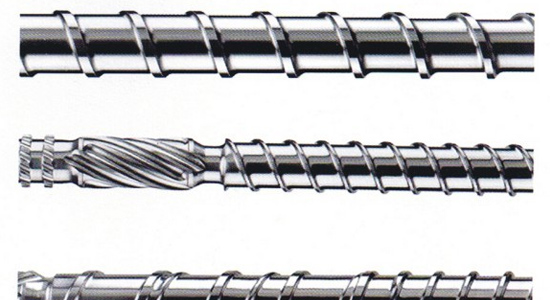 工作原理:是對塑料進行輸送、壓實、熔化、攪拌和施壓。這些都是通過螺桿在料筒內的旋轉來完成的。在螺桿旋轉時,塑料對于機筒內壁、螺桿螺槽底面、螺棱推進面以及塑料與塑料之間在都會產生摩擦及相互運動。塑料的向前推進就是這種運動組合的結果,而摩擦產生的熱量也被吸收用來提高塑料溫度及熔化塑料。螺桿的設計結構將直接影響到這些作用的程度。